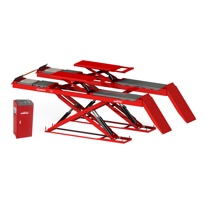 U-S45PD超薄子母四轮定位大剪式液压汽车举升机可举升各类重量不大于4500kg的汽车,适用于汽车维修企业、轮胎经销商各种档次汽车高精密四轮定位检测及汽车检修、维修及保养。